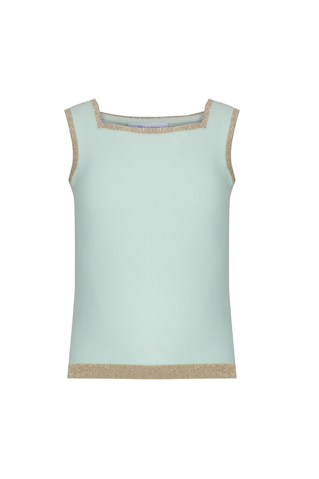 Топ детский российского бренда Jacote, коллекция Весна-Лето 2020. Состав: 67% вискоза, 29% полиакрил, 4% полиэстер; отделка-80% вискоза, 20% полиэстер.