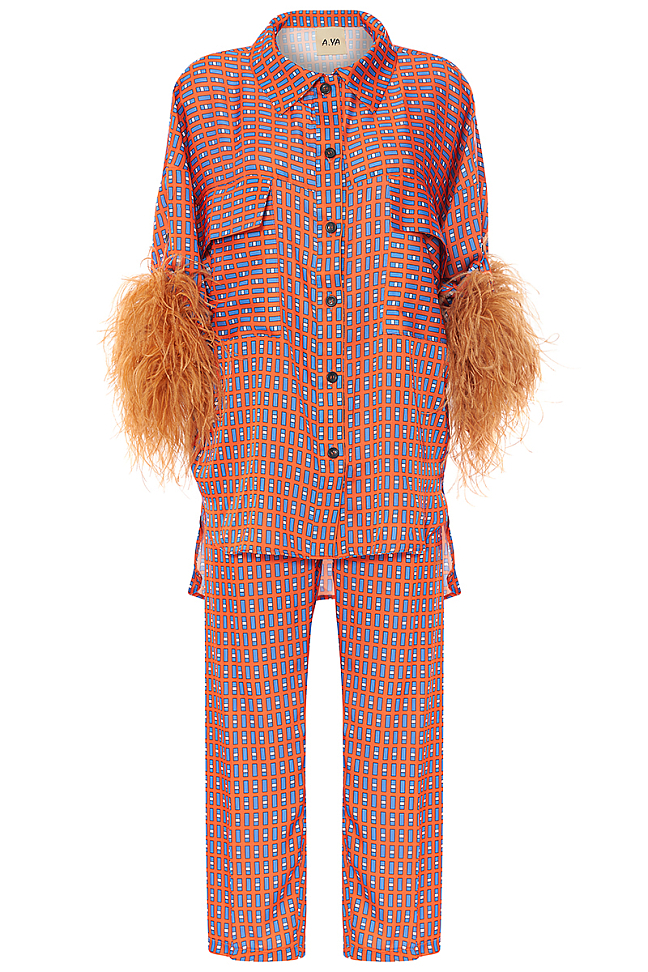 Костюм российского бренда A.YA, коллекция Весна-Лето 2021. Состав: 100% шёлк. Параметры модели: 178/83/63/90, надет размер S.
