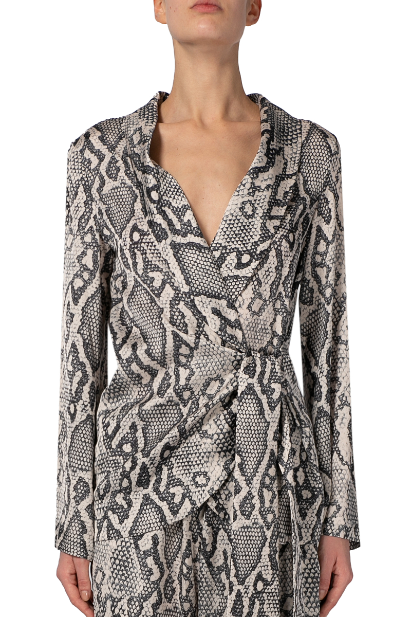 Костюм брючный российского бренда INNA MÛRIER, сезон Весна-Лето. Состав: 100% полиэстер. Параметры модели: 178/84/64/92, надет размер S. Цвет: анималистичный принт.