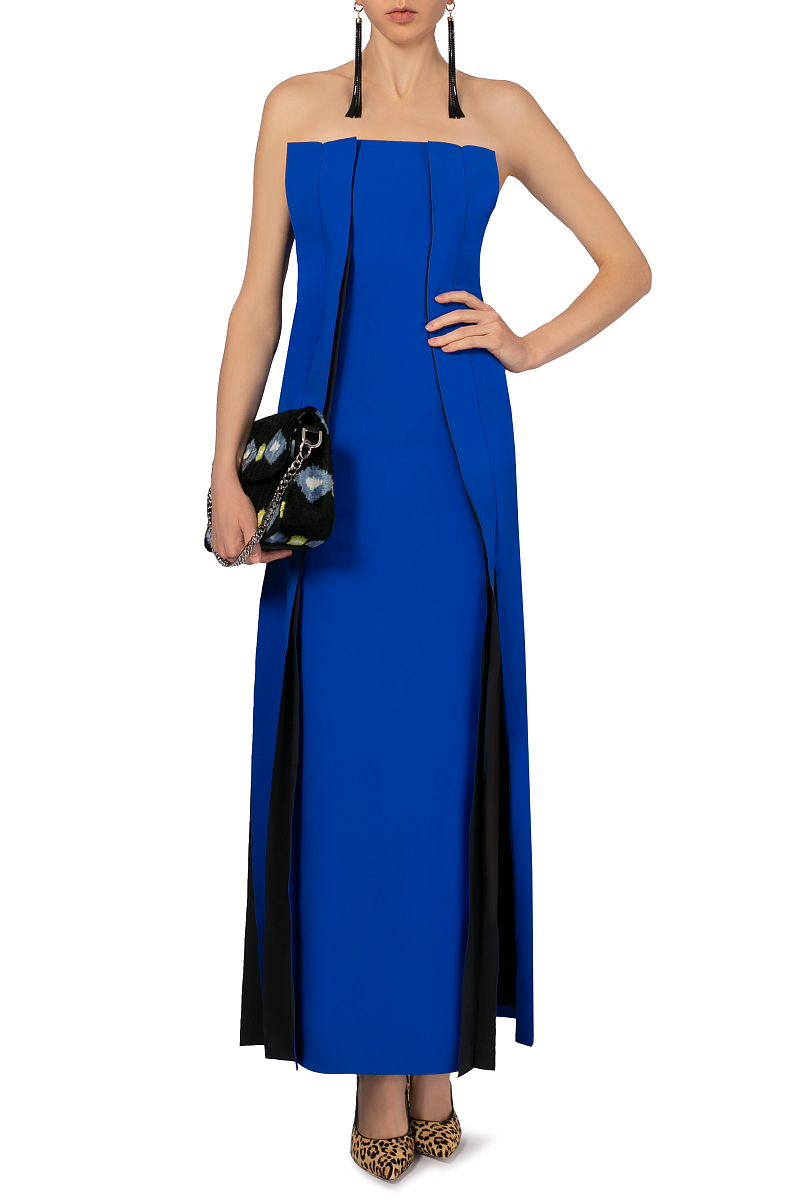 Платье бренда SANS MERCI, коллекция Осень-Зима 2022/2023. Состав: 85% полиамид, 15% эластан; подклад-90% полиамид, 10% эластан. Параметры модели: 178/85/63/92, надет размер one size.