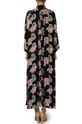 Платье макси российского бренда VOLUMINOUS, сезон Весна- Лето. Состав: 65% купро, 35% вискоза. Параметры модели: 176/84/64/92, надет размер S/M. Цвет: цветочный принт.