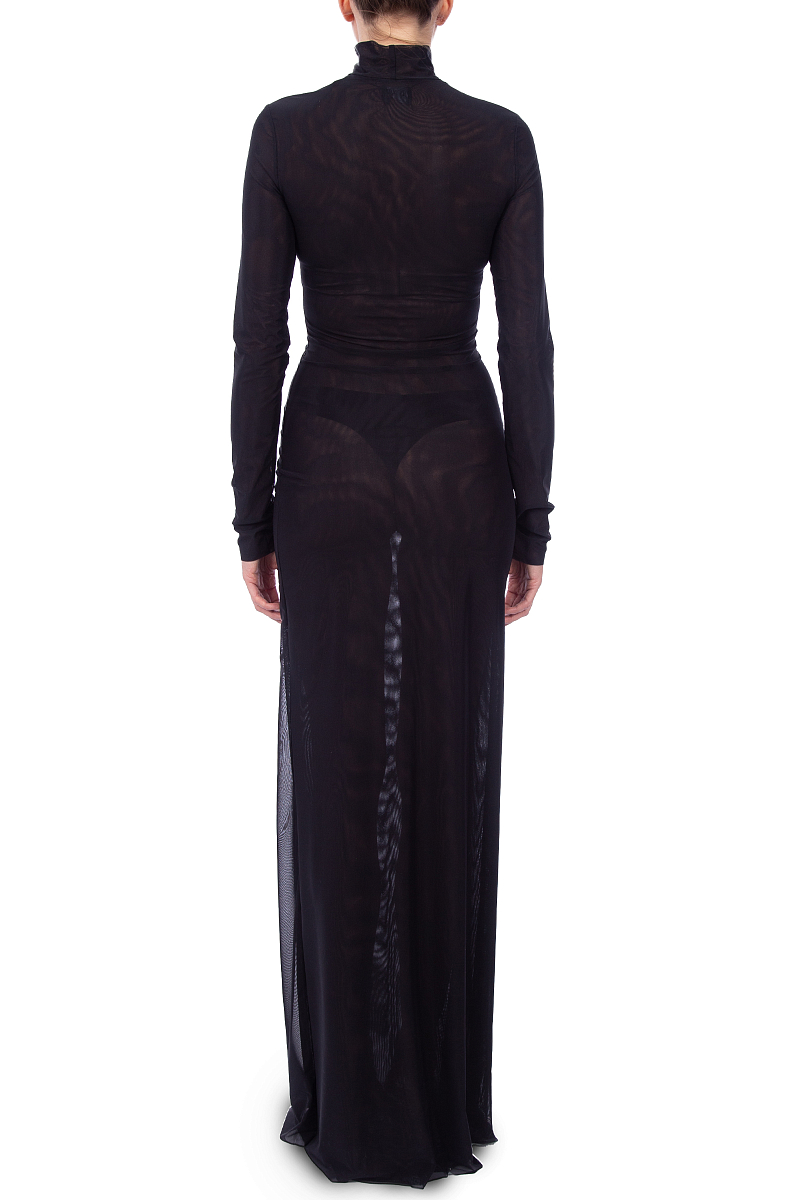 Платье макси из двойной сетки российского бренда LI LAB, сезон Осень-Зима. Состав: 84% полиамид, 16% эластан. Параметры модели: 178/85/65/93, надет размер S. Цвет: черный.