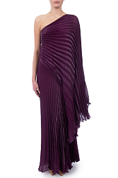 Платье гофре на один рукав российского бренда LIAS ASALY, сезон Осень-Зима. Состав: 60% шёлк, 40% полиэстер. Параметры модели: 175/87/60/91, надет размер one size. Цвет: фиолетовый.