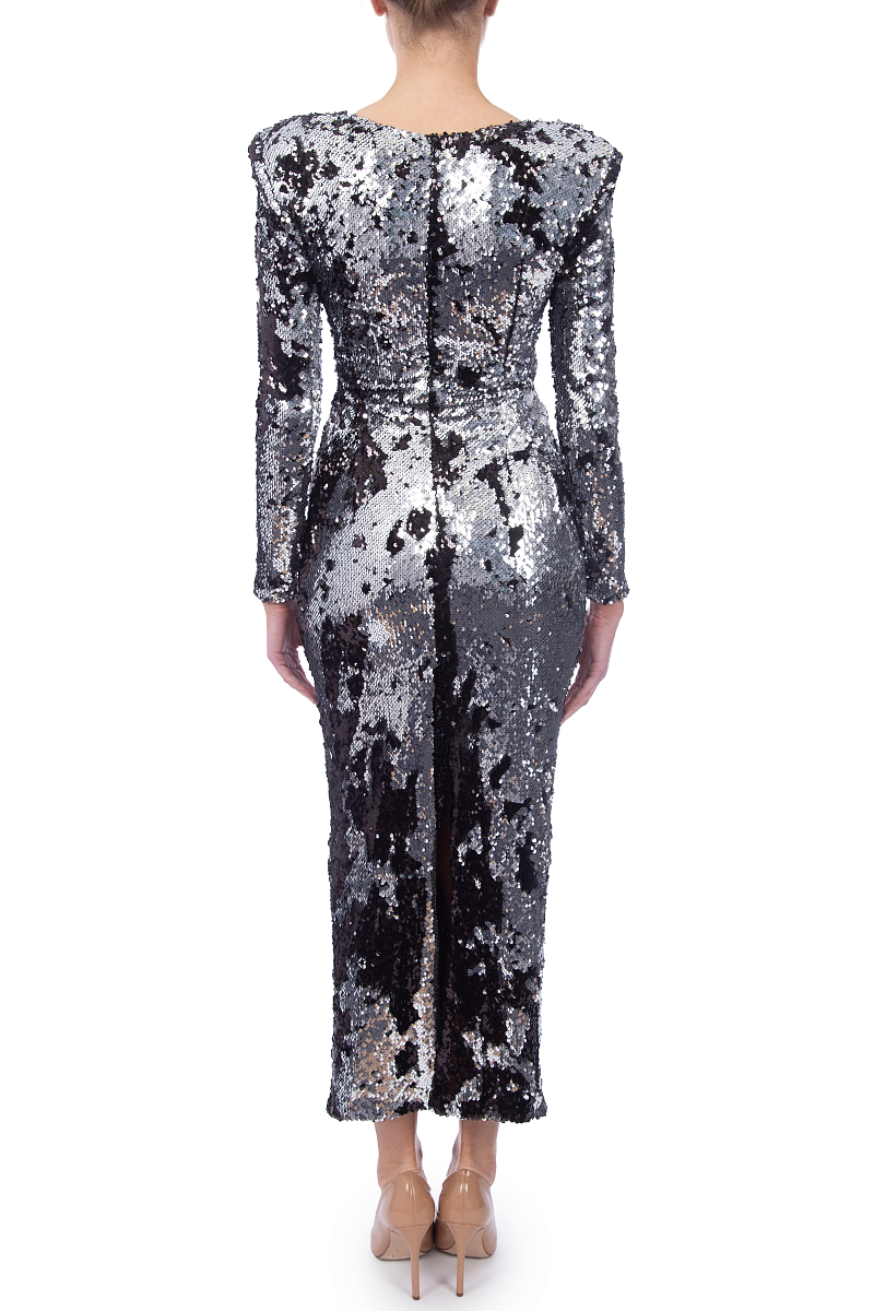 Платье макси с вырезом российского бренда MARINA BUDNIK, сезон Осень-Зима. Состав: 95% полиэстер, 5% эластан. Параметры модели: 175/87/60/91, надет размер S. Цвет: черный.