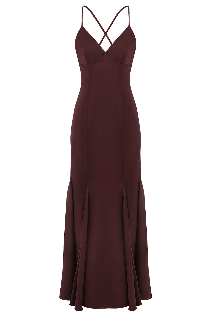Платье макси российского бренда MARINA BUDNIK, сезон Осень-Зима. Состав: 100% вискоза. Параметры модели: 175/87/60/91, надет размер S. Цвет: коричневый.