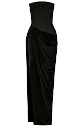 Платье российского бренда TOM ASH, Осень-Зима 2022/2023. Состав: верх-80% полиэстр, 20% полиэфир; низ-панбархат 70% полиэстер, 30% вискоза. Параметры модели: 178/85/63/92, надет размер 42 RU.
