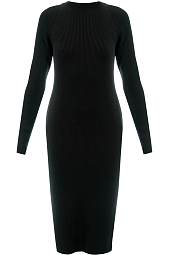 Трикотажное платье миди российского бренда LAROOM, сезон Осень-Зима. Состав: 50% шерсть, 50% акрил. Параметры модели: 178/85/65/93, надет размер XS. Цвет: черный.