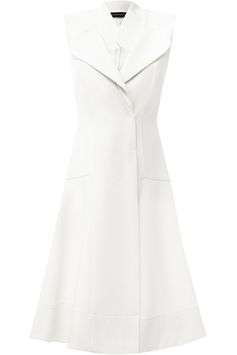Жакет-платье российского дизайнера Александра Арутюнова, коллекция Весна-Лето 2018. Состав: 80% шерсть, 20% хлопок. Параметры модели: 177/87/60/90 , надет размер S.