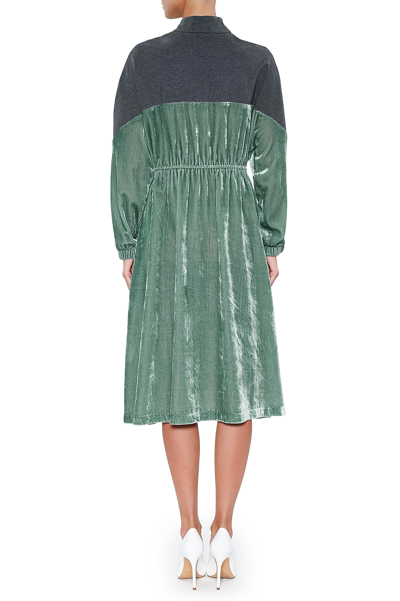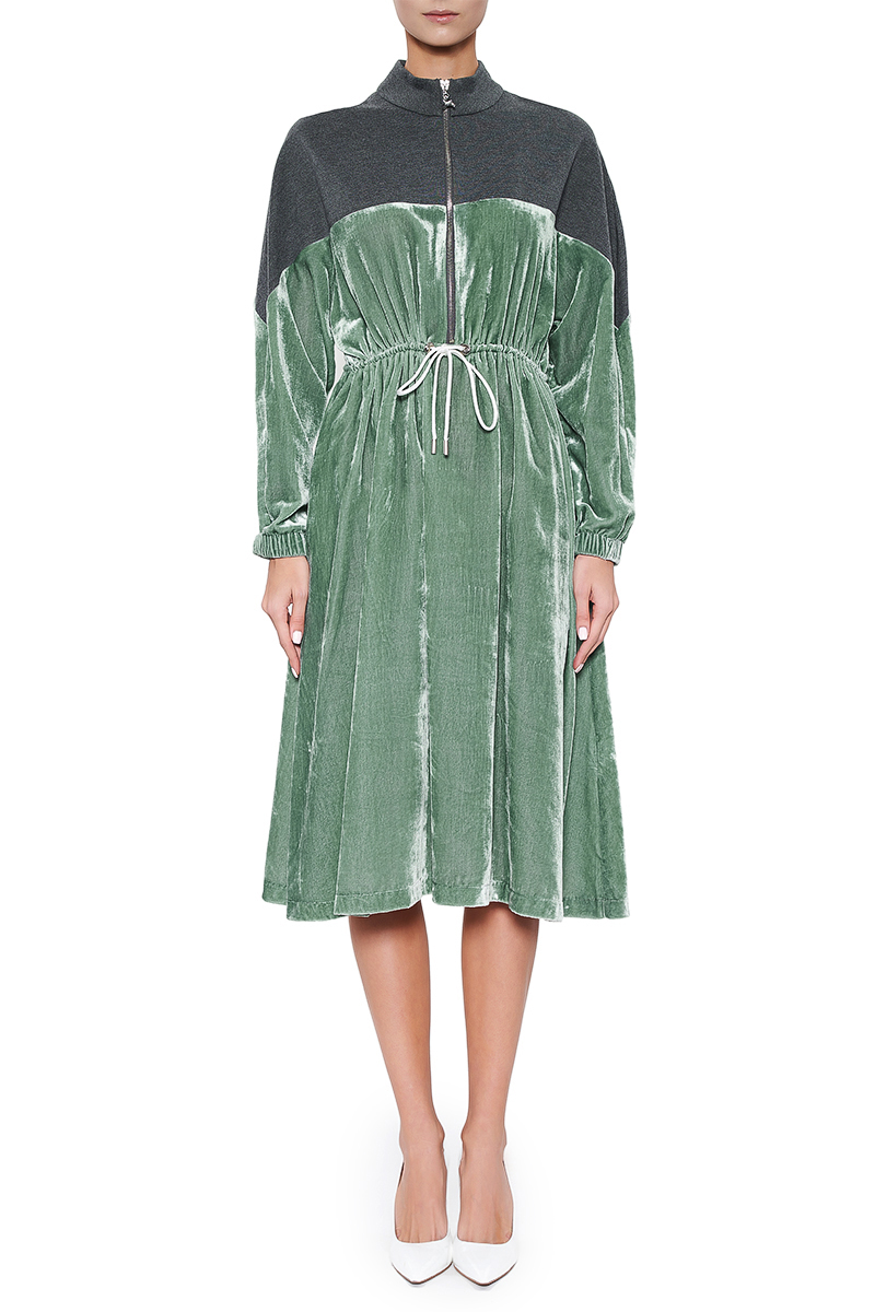 Платье из второй линии Модного дома Алены Ахмадуллиной Akhmadullina Dreams, коллекция Осень-Зима 2019. Состав: 82% район, 18% нейлон; отделочный материал-68% район, 27% нейлон, 5% спандекс. Параметры модели: 177/87/60/90, надет размер 42.