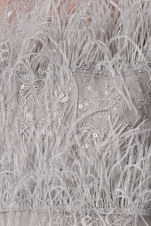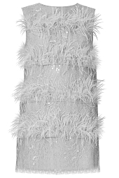 Платье российского бренда MAISON ESVE, коллекция Осень-Зима 2020/2021. Состав: 100% полиэстер; подклад-100% шелк; отделка-бусины 100% стекло, 100% перо. Параметры модели: 178/83/62/90, надет размер S.