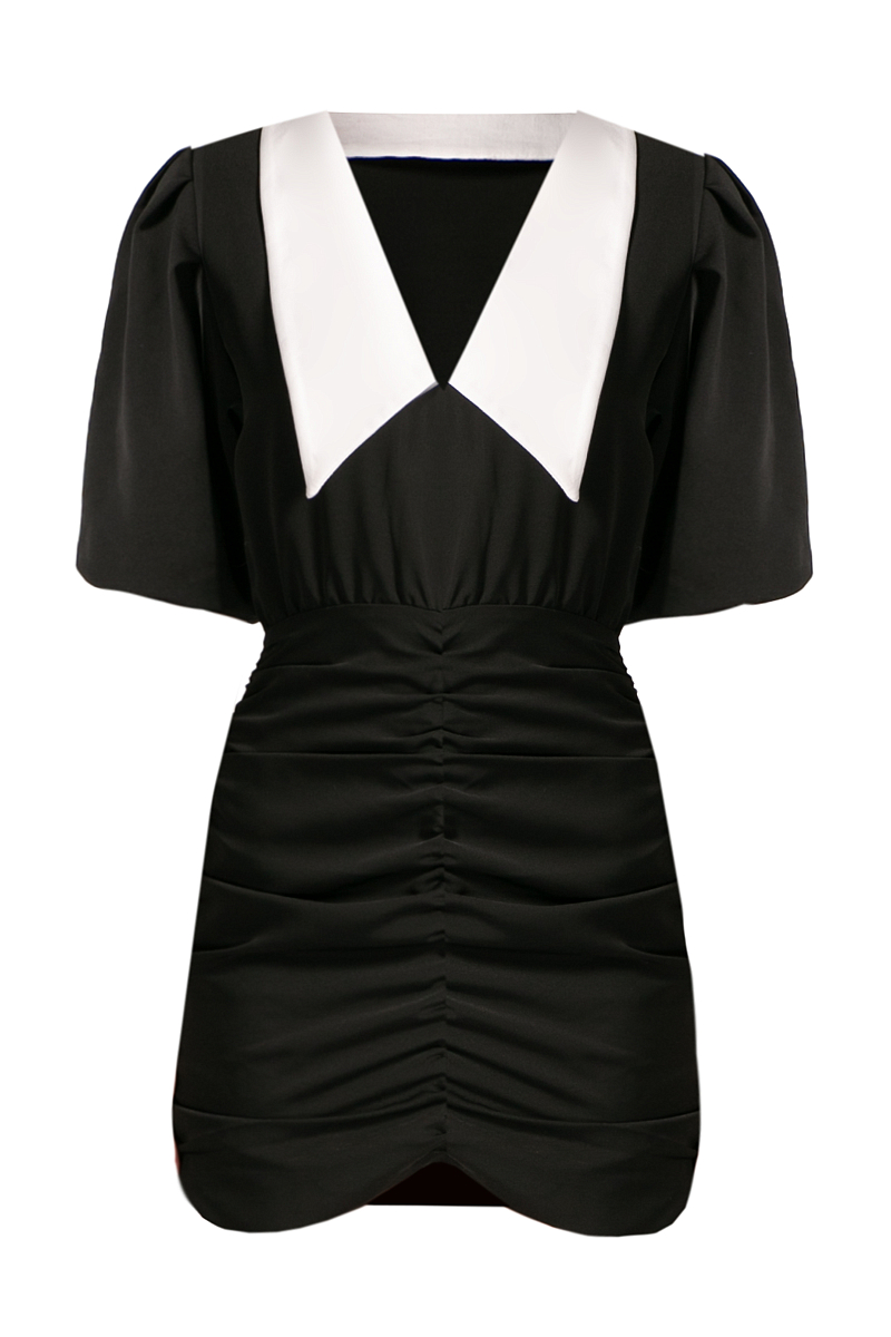 Платье мини российского бренда LIBELLULAS, сезон Весна. Состав: 70% хлопок, 30% полиэстер. Параметры модели: 178/84/64/92, надет размер XS. Цвет: черный.