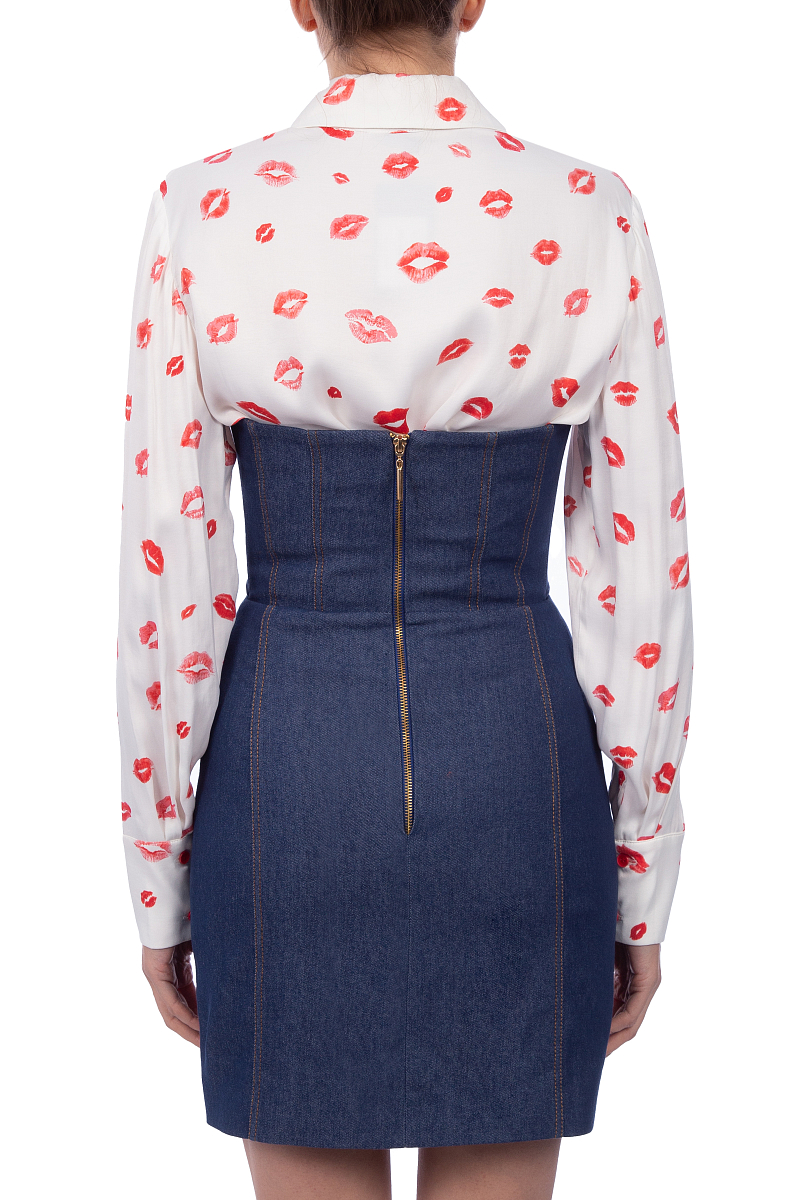 Платье корсетное мини российского бренда MARINA BUDNIK, сезон Осень-Зима. Состав: 95% хлопок, 5% эластан. Параметры модели: 178/85/65/93, надет размер S. Цвет: синий.