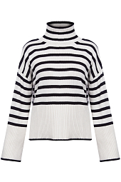 Свитер свободного кроя российского бренда LI LAB, сезон Осень-Зима. Состав: 85% вискоза, 15% эластан. Параметры модели: 178/85/65/93, надет размер one size. Цвет: принт черно-белая полоска.