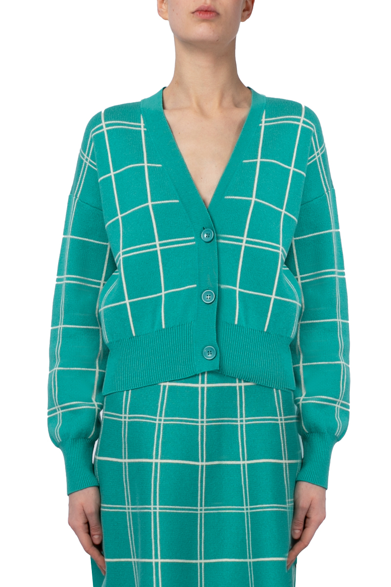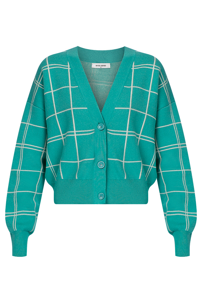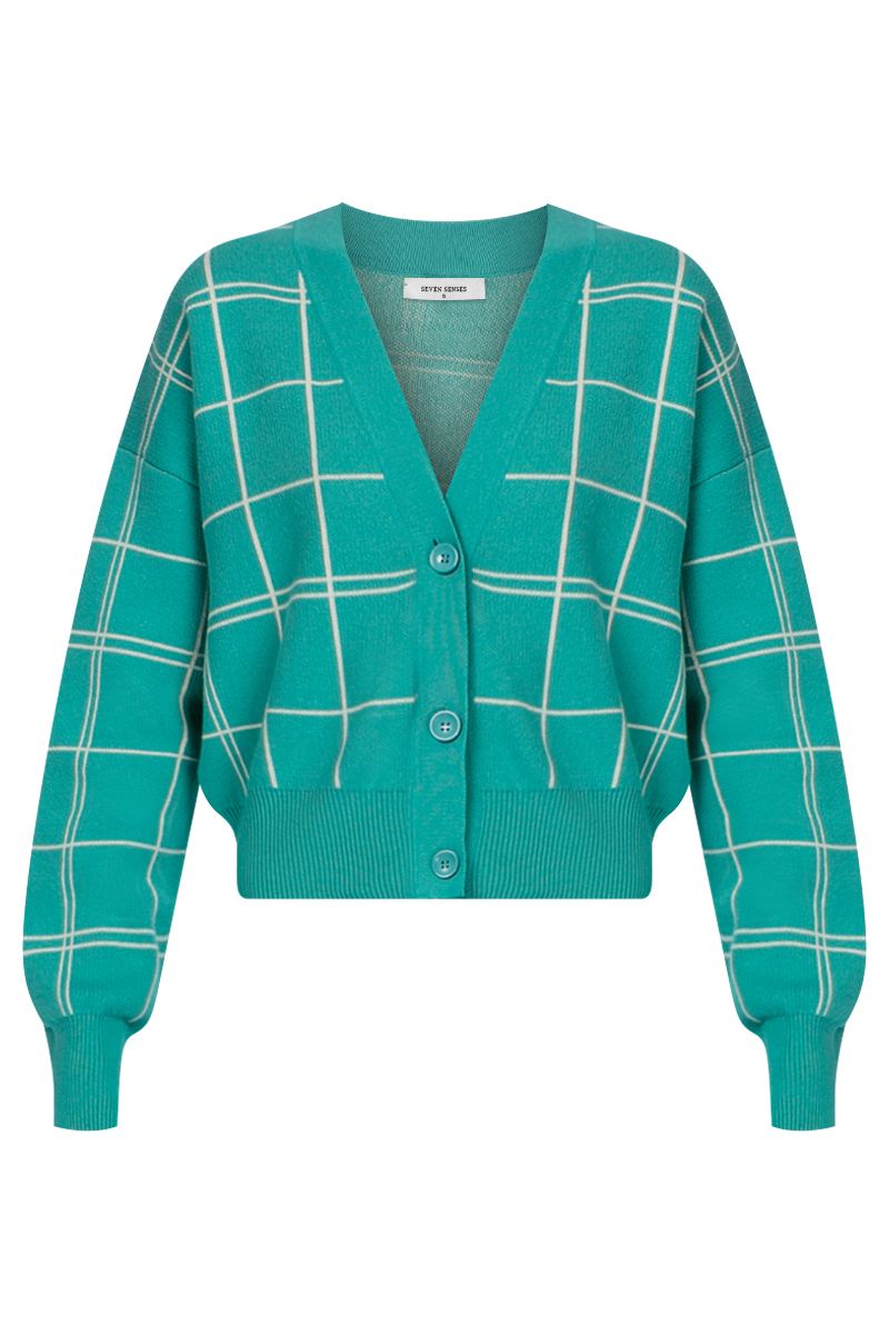 Кардиган российского бренда SEVEN SENSES, коллекция Весна 2022. Состав: 50% хлопок, 50% акрил. Параметры модели: 178/83/62/90, надет размер S.