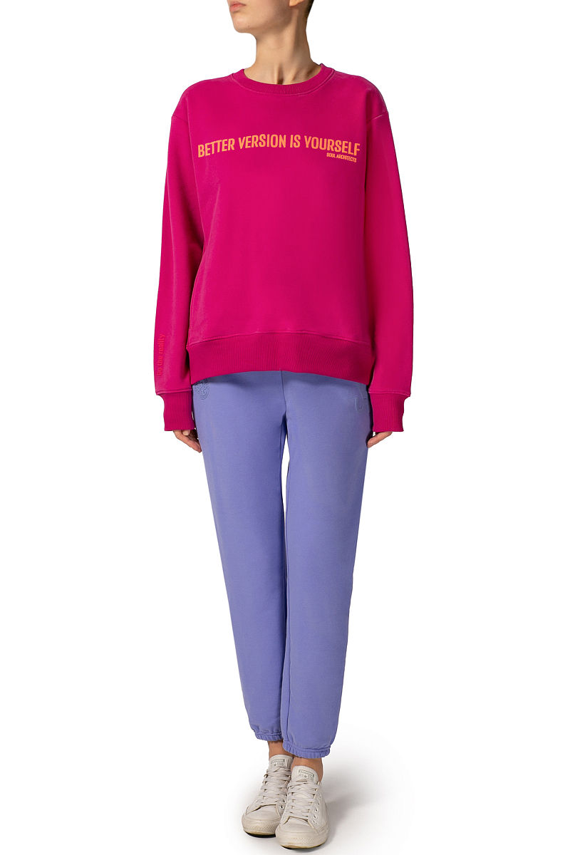 Свитшот российского бренда SOUL ARCHITECTS, сезон Весна-Лето. Состав: 92% хлопок, 8% эластан. Параметры модели: 178/84/64/92, надет размер XS/S. Цвет: фуксия.