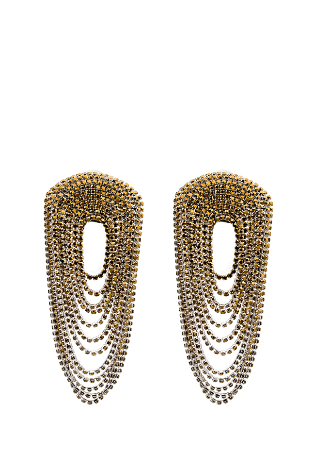 Клипсы российского дизайнера SEXY FISH JEWELRY, Зима 2021/2022. Состав: стразовая лента, искуственная кожа, металл. Уважаемые покупатели, возврат данного изделия возможен только в момент примерки курьеру при доставке. Оплаченный товар обмену и возврату не подлежит.
