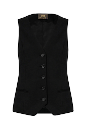 Жилет российского бренда VENERA M, коллекция Весна-Лето 2021. Состав: 50% шерсть, 47% полиэстер, 3% лайкра. Параметры модели: 178/83/62/90, надет размер 44 RU.