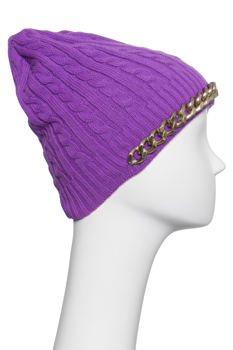 Шапка вязаная ALEXANDER ARUTYUNOV, российского дизайнера Александра Арутюнова, коллекцизима 2014. Основа: 100% шерсть, металл фиолетового цвета.
