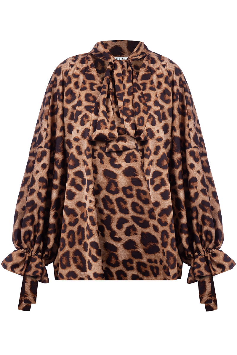 Блуза российского бренда KOSS, сезон Осень-Зима. Состав: 100% вискоза. Параметры модели: 178/85/65/93, надет размер S. Цвет: леопардовый принт.