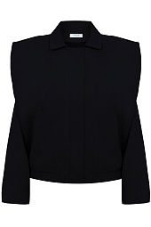Бомбер-пилот российского бренда MERE, сезон Осень-Зима. Состав: 70% шерсть, 30% полиэстер; подклад- 53% вискоза, 47% полиэстер. Параметры модели: 178/84/65/93, надет размер one size. Цвет: черный.