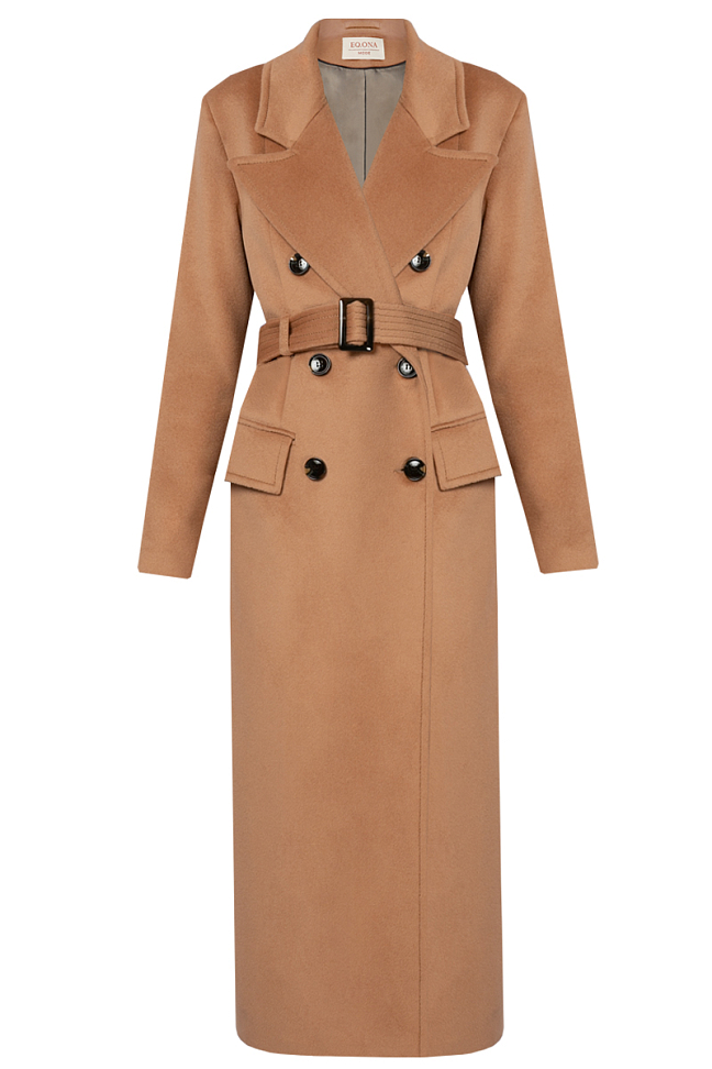 Пальто российского бренда EQ.ONA, коллекция Весна 2022. Состав: 50% шерсть, 34% вискоза, 10% кашемир, 6% шелк. Параметры модели: 178/83/62/90, надет размер S.