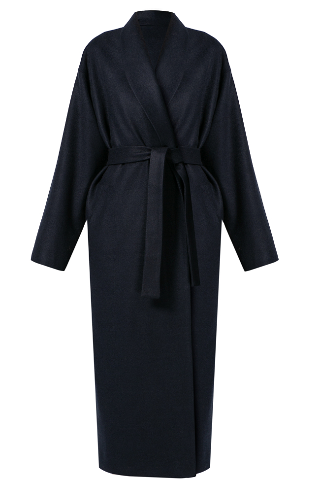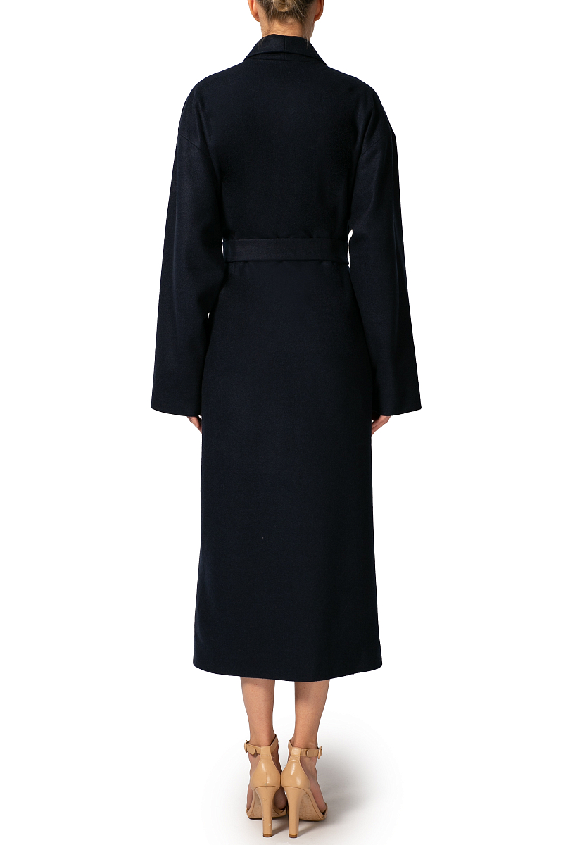 Пальто российского бренда LIBELLULAS, сезон Весна. Состав: 50% шерсть, 50% акрил. Параметры модели: 178/84/64/92, надет размер XS/S. Цвет: синий.