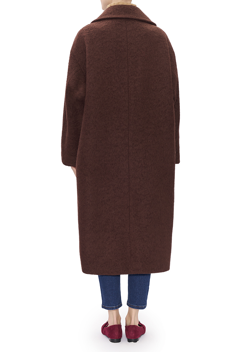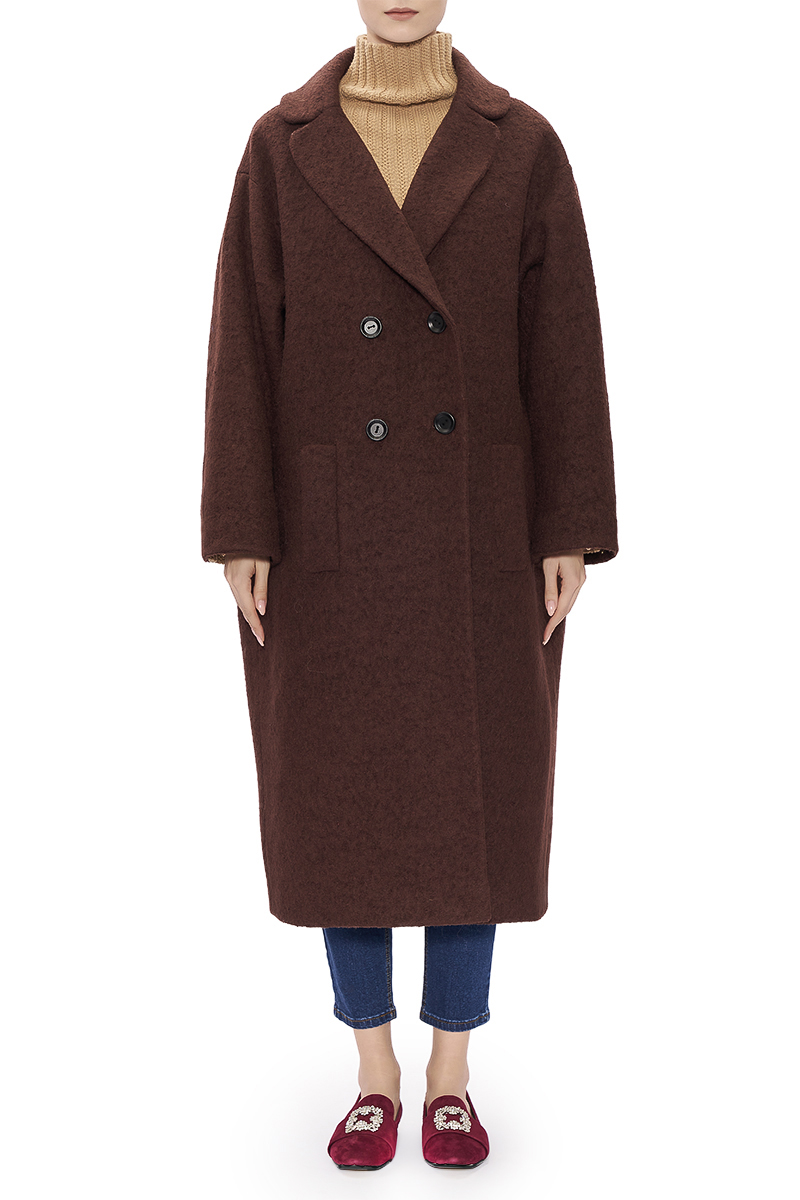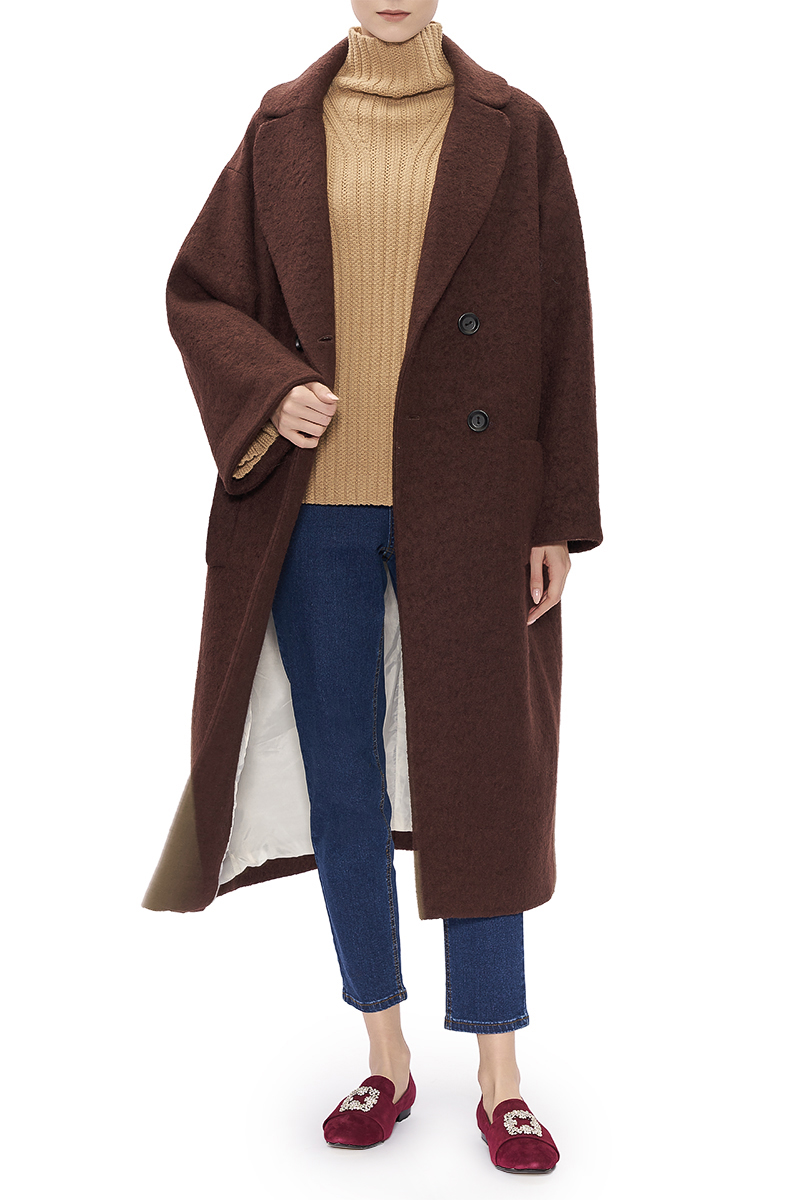 Пальто российского бренда Mirstores, коллекция Осень-Зима 2019. Состав: 50% шерсть, 50% полиэстер; подклад-100% полиэстер. Параметры модели: 177/87/60/90, надет размер oversize.