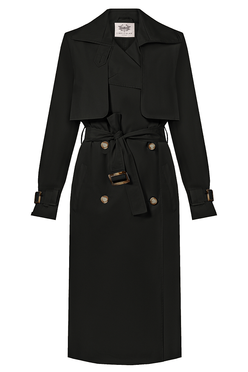 Тренч российского бренда LIBELLULAS, коллекция Осень-Зима 2022/2023. Состав: 100% полиэстер, мембрана. Параметры модели: 178/85/63/92, надет размер XS/S.