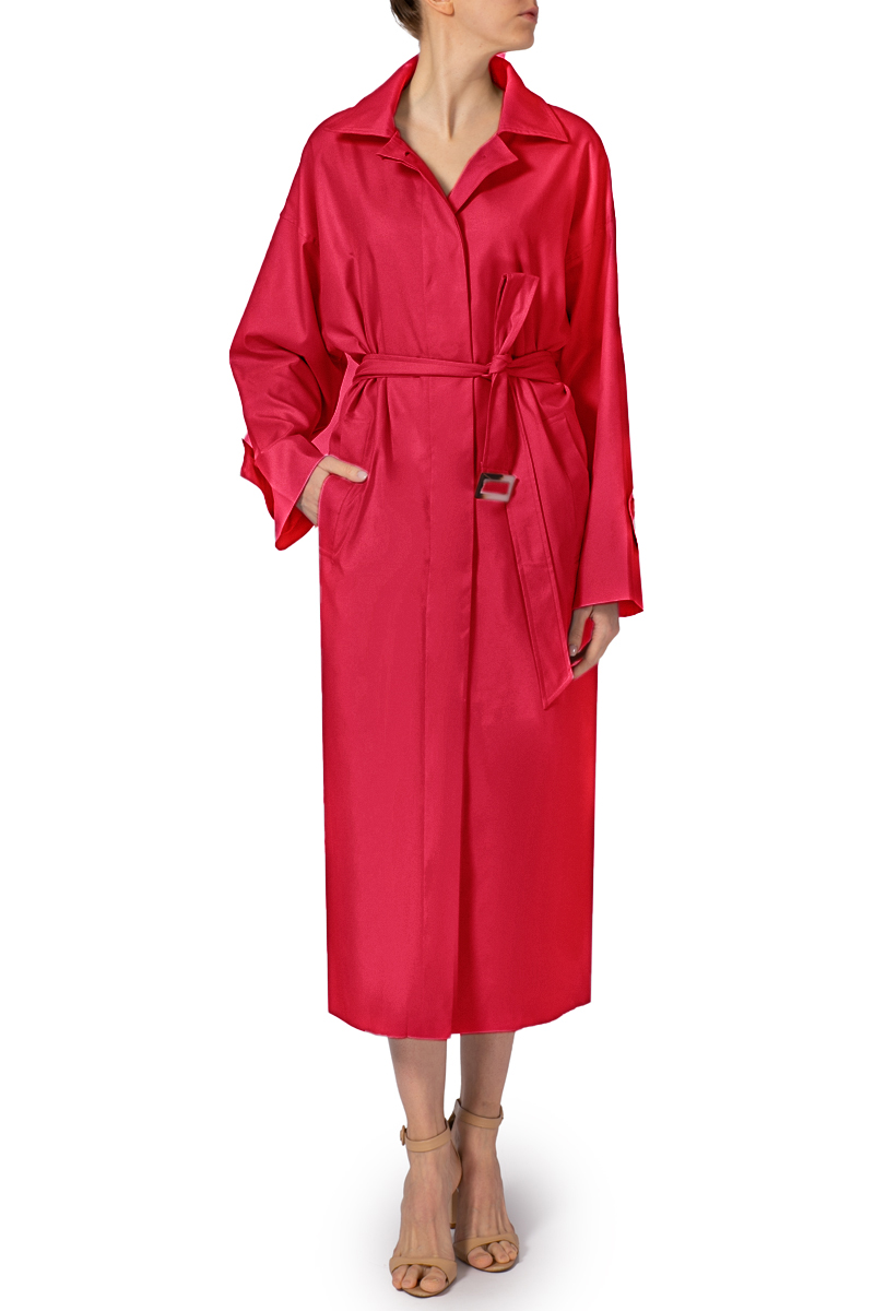 Плащ российского бренда MERE. Состав: 45% хлопок, 55% полиэстер; подклад-53% вискоза, 47% полиэстер. Параметры модели: 176/82/60/90, надет размер one size.