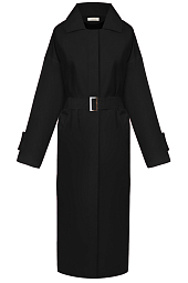 Тренч оверсайз российского бренда MERE, сезон Осень-Зима. Состав: 100% полиэстер; подклад- 53% вискоза, 47% полиэстер. Параметры модели: 178/85/65/93, надет размер one size. Цвет: черный.