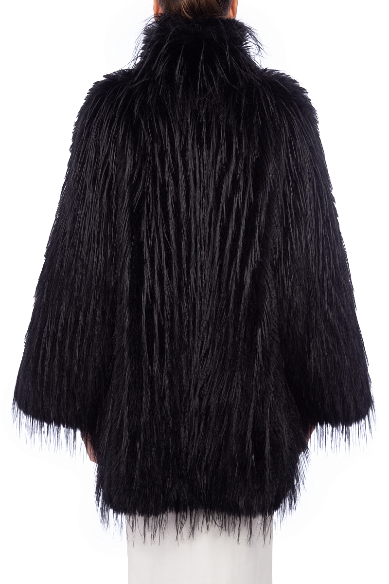 Шуба укороченная российского бренда KOSS, сезон Осень-Зима. Состав: 100% полиэстер. Параметры модели: 178/85/65/93, надет размер one size. Цвет: черный.