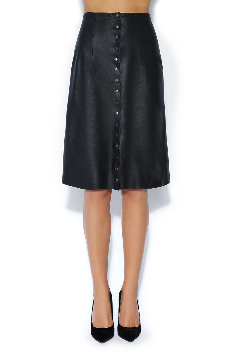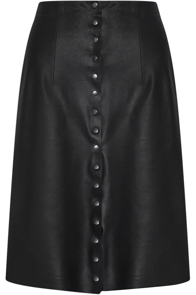Юбка на пуговицах российского бренда GALOLBO, коллекция Осень-Зима 2018. Состав: 100% кожа. Параметры модели: 177/87/60/90 , надет размер 42.