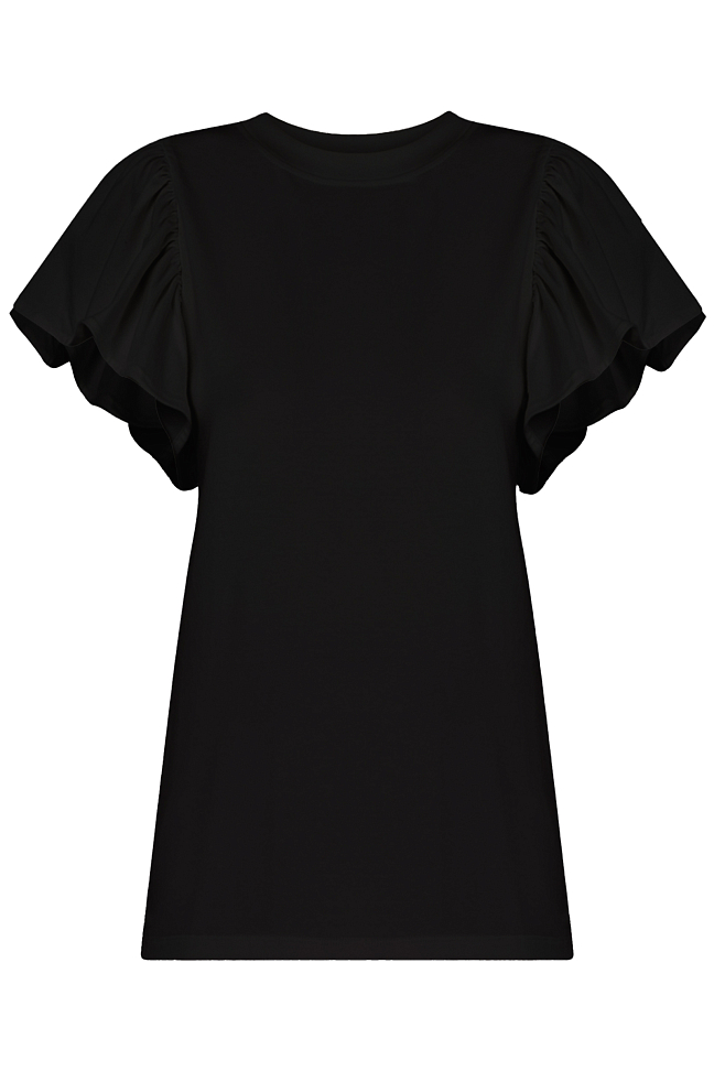 Футболка российского дизайнера Droid&I, коллекция Весна-Лето 2022. Состав: 95% хлопок, 5% эластан. Параметры модели: 178/84/63/90, надет размер XS.