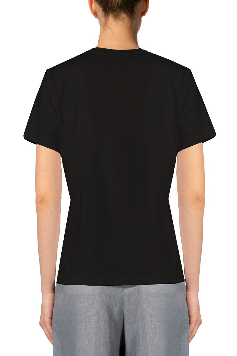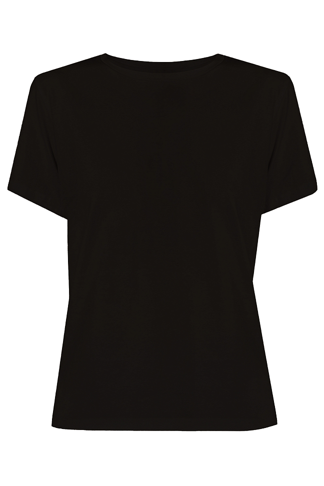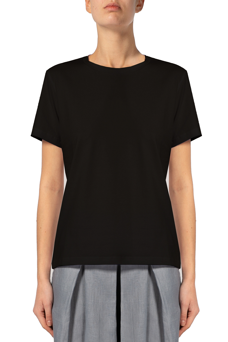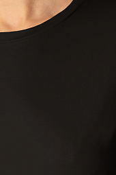 Футболка российского бренда SEVEN SENSES, сезон Весна. Состав: 95% хлопок, 5% лайкра. Параметры модели: 178/83/62/90, надет размер XS. Цвет: черный.
