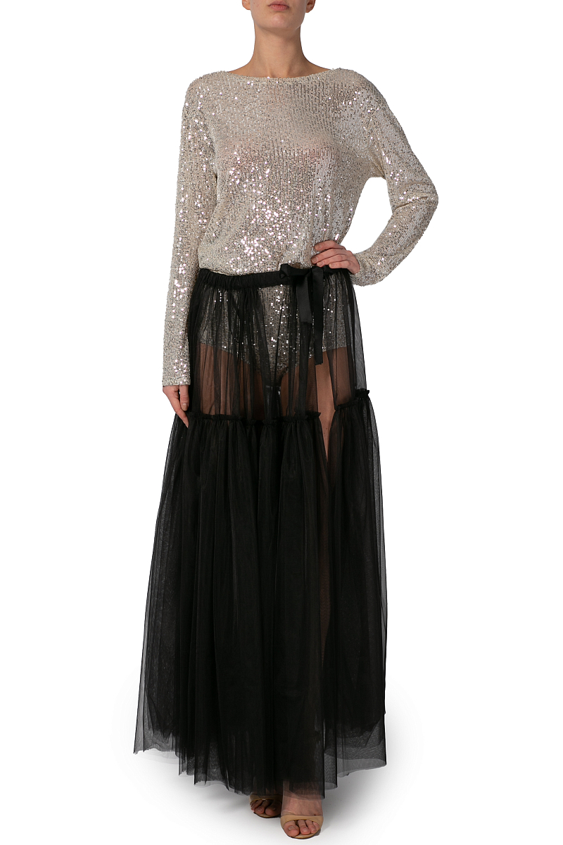 Лонгслив российского бренда TATMU, сезон Весна-Лето. Состав: 100% полиэстер. Параметры модели: 178/84/64/92, надет размер XS/S. Цвет: белый.