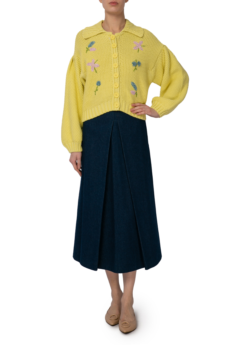 Юбка российского дизайнера Алены Ахмадуллиной. Состав: 100% хлопок. Параметры модели 178/83/63/90.