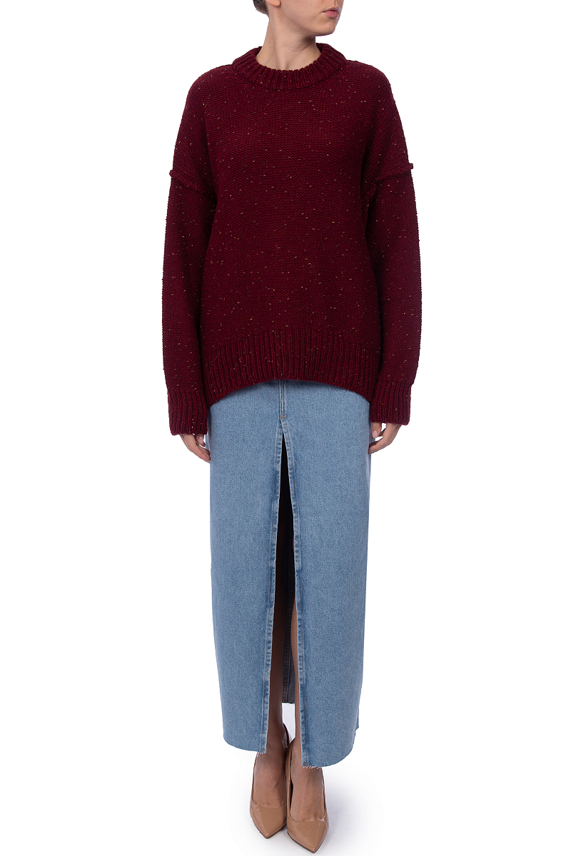 Джемпер российского бренда THEONE BY SVETLANA ERMAK, сезон Осень-Зима. Состав: 50% хлопок, 45% акрил, 5% люрекс. Параметры модели: 178/85/65/93, надет размер one size. Цвет: бордовый.