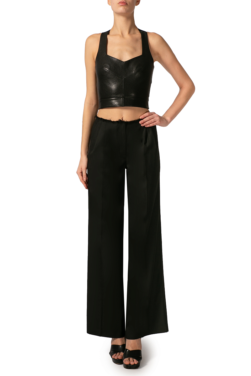 Брюки прямые российского бренда THE ARCH, сезон Весна-Лето. Состав: 55% полиэстер, 45% шерсть. Параметры модели: 178/84/64/92, надет размер S. Цвет: черный.