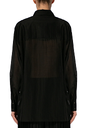 Блуза российского бренда MERE, сезон Весна-Лето. Состав: 70% тенсел, 30% хлопок. Параметры модели: 178/84/64/92, надет размер one size. Цвет: черный.