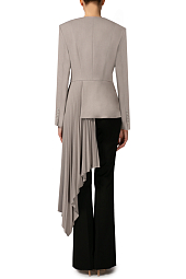 Жакет российского дизайнера Светланы Богдановой. Состав: 55% вискоза, 41% полиэстер, 4% эластан. Параметры модели: 178/83/62/90, надет размер 42 RU.