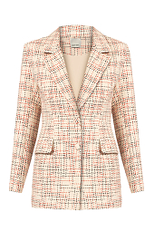 Жакет однобортный российского бренда NORTHERN, сезон Весна. Состав: 86% хлопок, 14% полиэстер. Параметры модели: 178/84/64/92, надет размер S. Цвет: белый, абстрактный принт.
