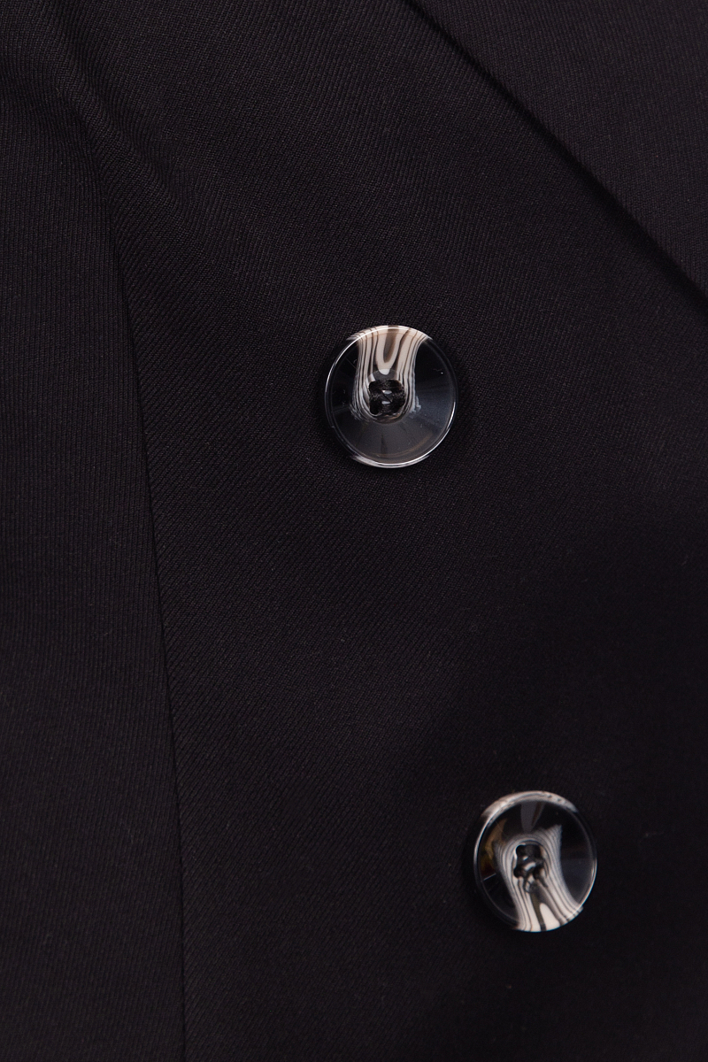 Жакет российского бренда ROMANI, сезон Осень-Зима. Состав: 56% полиэстер, 40% вискоза, 4% эластан. Параметры модели: 178/85/65/93, надет размер 42 RU. Цвет: черный.
