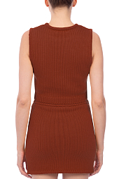 Трикотажный топ российского бренда THEONE BY SVETLANA ERMAK, сезон Осень-Зима. Состав: 80% хлопок, 20% акрил. Параметры модели: 178/85/65/93, надет размер XS/S. Цвет: оранжевый.