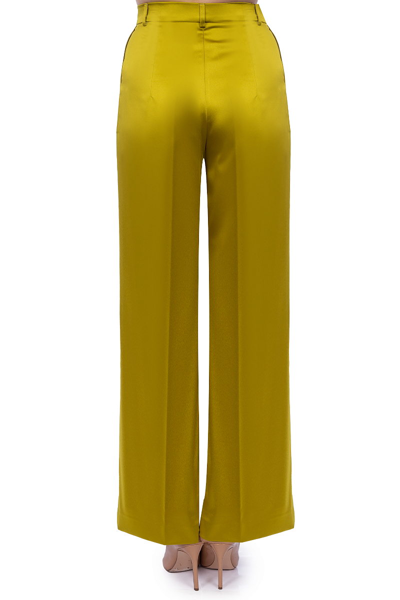 Брючный костюм российского бренда MARINA BUDNIK, сезон Осень-Зима. Состав: 100% вискоза. Параметры модели: 178/85/65/93, надет размер S. Цвет: оливковый.